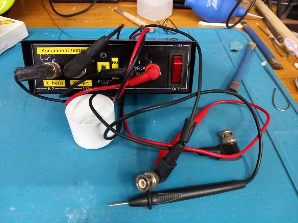 čim elipsa ima zakošenost znači da elko nije valjao i nalazio ih je kao mačka miša... tranzistore smo testirali kao diode, takođe vremenom naučiš BU208 kakav je itd.. fantazija.. danas moj hameg vata prašina na stolu.. jbg.. slika dole zadnja skroz ESR02 Pro.. samo bocneš i sve ti kaže, a košta 20 evra, a osc nekada 1000++
