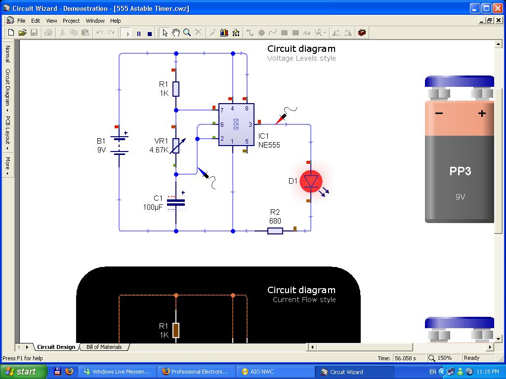 A jbg nemam photoshop u ovaj comp da isecem lepo.Ali ako treba uradicu ti to lepo.i ako zatreba plocica javi da ti posalje nacrt.U simulaciji radi perfektno.Ako ti treba jos veca brzina neko sto mozes da dobijes na potenciometrar samo smanji vrednost kondezatora.Naravno umesto led diode vezi tranzistor zavisno koji ti treba po snazi