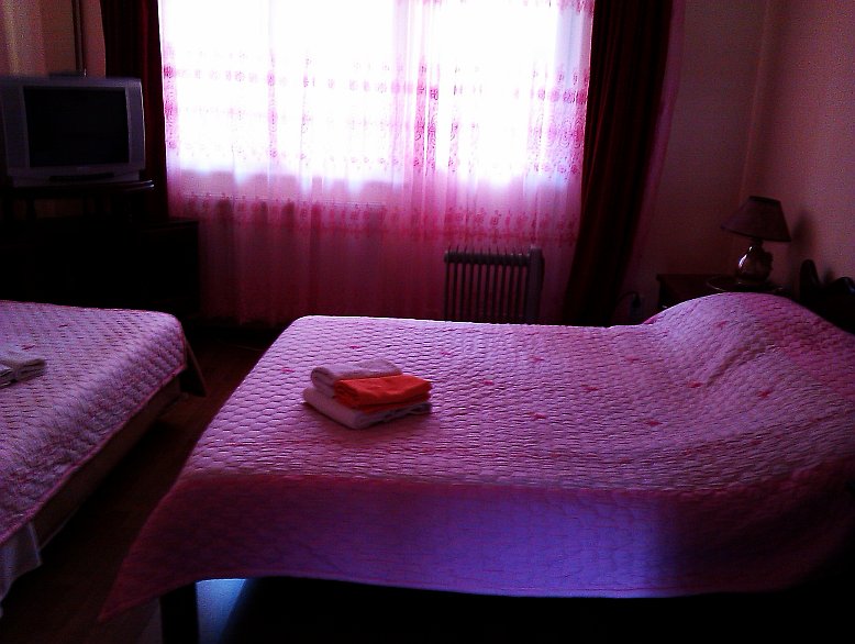 Ima 18 soba. Sve su sobe sa kupatilom i predsobljem. Dvokrevetne i trokrevetne sobe. Moguće je ubaciti u sobu krevet/krevetac/krevet na sprat ako bude potrebe. Sobe izgledaju kao aparatmani samo nemaju kuhinju. Svaka ima poseban ulaz. Kada se uđe, ulazi se u predsoblje, sa leve/desne strane je kupatilo a napred se ulazi u sobu. U sobama ima tv, bar u ove dve što smo videli, a da li radi, ne znam i aklimatizovane su.