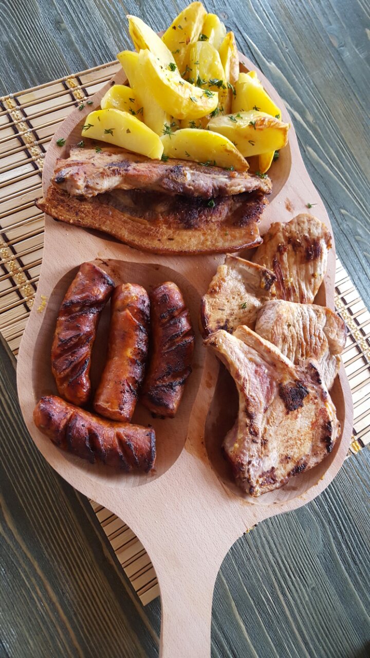 Plato za 4 osobe 65lei,sarme 20lei,saramura od ribe 20lei,riba saran 30lei 250gr,plato jagnjetine 75lei 2 ili 4 osobe(nisam siguran),corbe razne +- 10lei,papanasi (slatke krofnice) 10lei,predjelo plato 4 osobe 40lei (nema slike jos) ....mozda sam nesto omasio...itd. :pivopije: