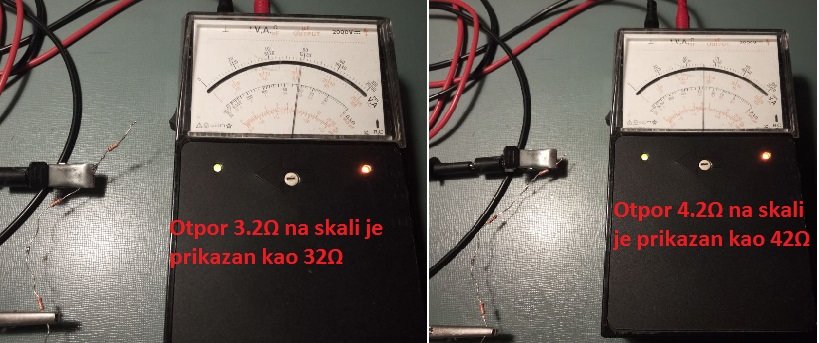 Skalu instrumenta odlučio sam da ne mijenjam već ću koristiti staru. Jedina razlika je u sledećem. Kada se na omskoj skali izmjeri vrijednost 10, to odgovara ESR otporu od 1 om. Podeok dvadeset je u stvari 2 oma, 30 je tri oma... Jedan podeok na skali je 0.1 om. Iz tog razloga neću mijenjati skalu već samo izmjerenu vrijednost dijelim sa 10.