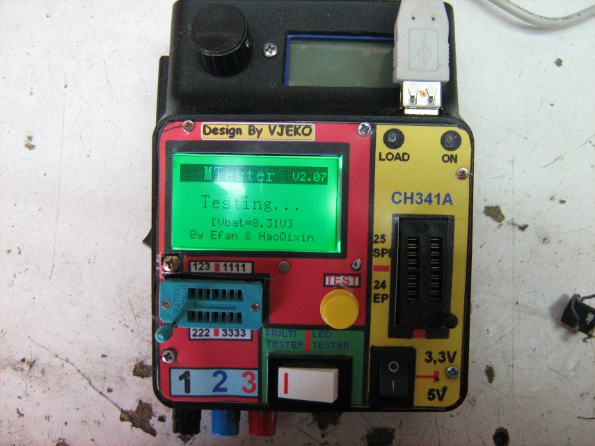 neki tester, i taj ima i ESR mada njega nikad ne koristim za to ubacio sam mu i programator, jer mi je tako praktičnije nego da ga valjam stalno po rukama i tester za pojedinačne LED 1-4 V (sve to radi na punjive baterije)