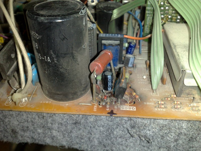 Sa ubacivanjem zenerke od 10V na poziciji D818 i zamenom elektrolita kao i korekcijom nekoliko hladnih lemova smatram da se moze upisati reseno u naslovu