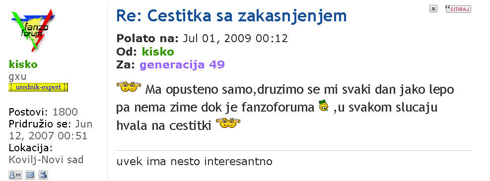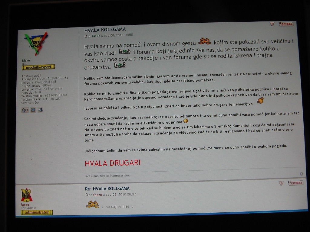 Evo nesto iz Kiskove i nase korespodencije.Brisao sam sve misleci .....iiiiiiiiiiiiii............."druzimo se mi" svaki dan.
