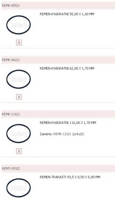Kad si uporan... :) evo ovde imaš i traži, ne pojedinačno, nego set remena VS1150.