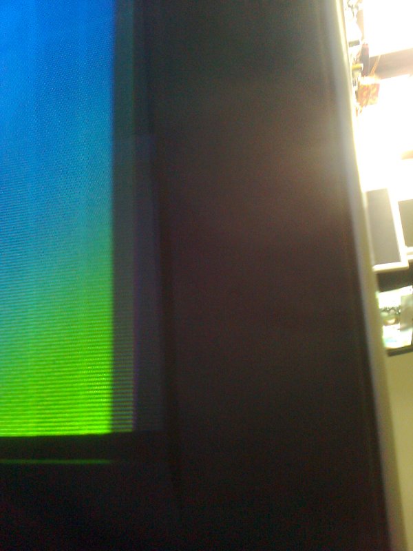 Slika preko skarta je u redu osim ovog nepravilnog suzenja odozgo koje se javlja i na tjuneru. Za nijansu je manje slika suzena na sredini ekrana nego na krajevima.Nisu bas neke slike, slikano je mobilnim, nadam se da se vidi.