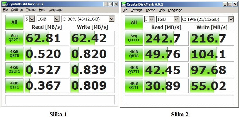Na prvoj slici su R/W rezultati i sa HDD-om dok su na drugoj sa SSD-om.