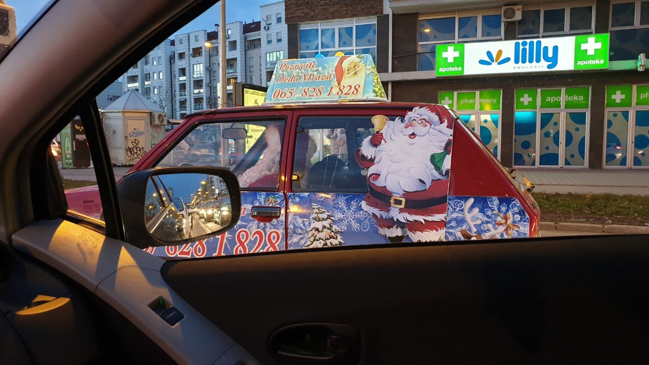 Novosadski dedamraz u Yugiši na semaforu