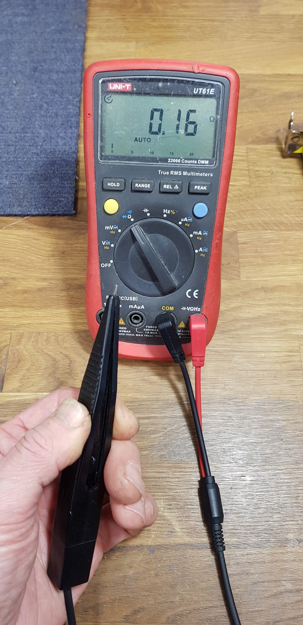 Najveća mana mu je što ima suviše kratke mjerne kablove. Svega 18cm. Probao sam da ga priključim na kablove od UT61 dužine 125cm ali nije htio da radi, odnosno, ne može da se kalibriše. Kada se pritisne taster “zero” zbog ukupne dužine kaklova od 250cm, instrumenat kaže da ne može da izvrši kalibraciju.