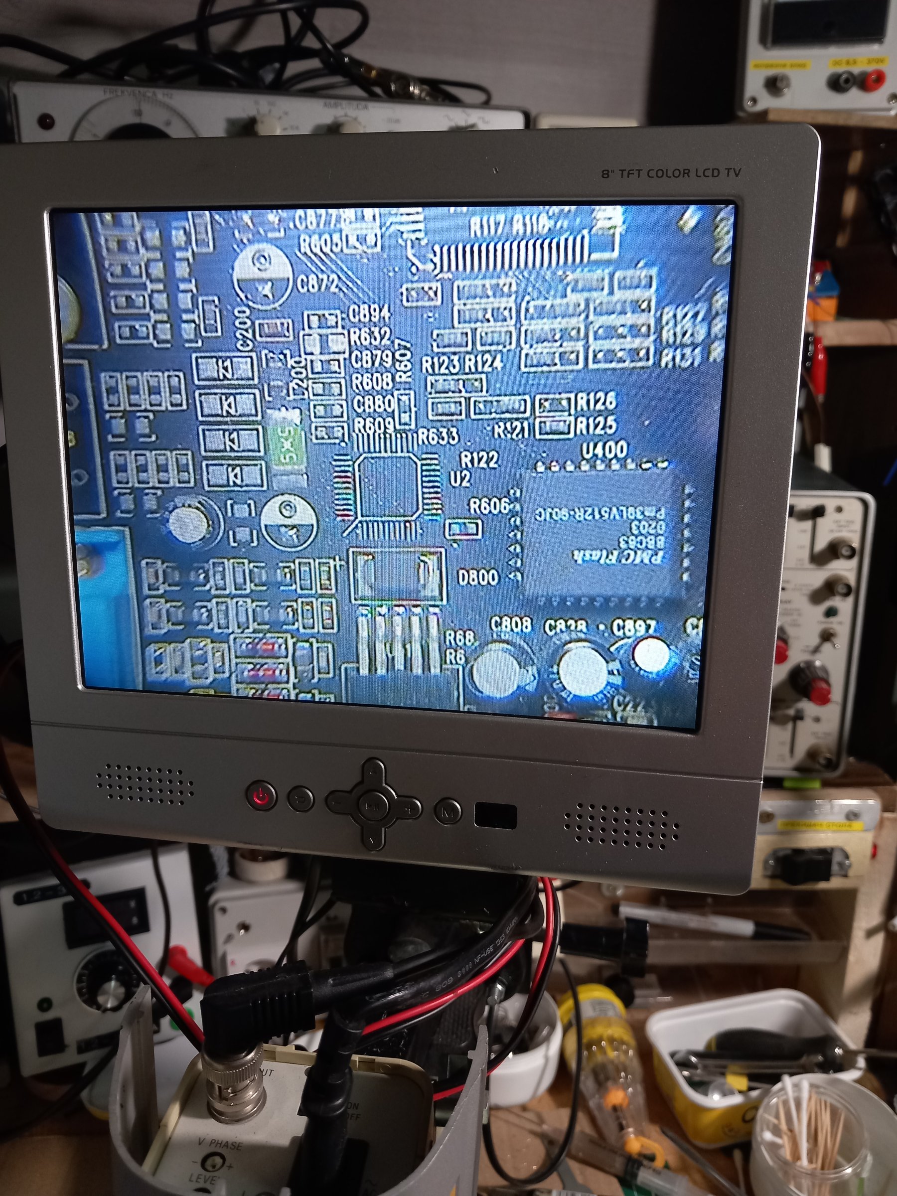 Na slici dolje je objektiv udaljen cca 20-25 cm od Vestelove ploče, slika je odlična a prostora za rad lemilicom sasvim dovoljno.