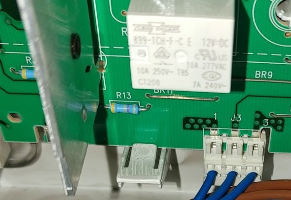 Konektor na elektronicku plocu se nalazi na slici u prilogu. Kad se pokrene neki program, bravice se odmah zakljuca i tada izmedju tacaka 1 i J3 mogu izmjeriti 222 VAC. Takodje moze se osjetiti da je ovaj hladnjak od triaka topao. Program je poceo(ispustanje) vode i isti traje cca 3 min. Otprilike nakon 10 min mjerim i dalje postoji 220 VAC izmedju 1 i J3, dakle bravica je i dalje pod naponom. Ako zavucem ruku i opipam je i dalje je topla.