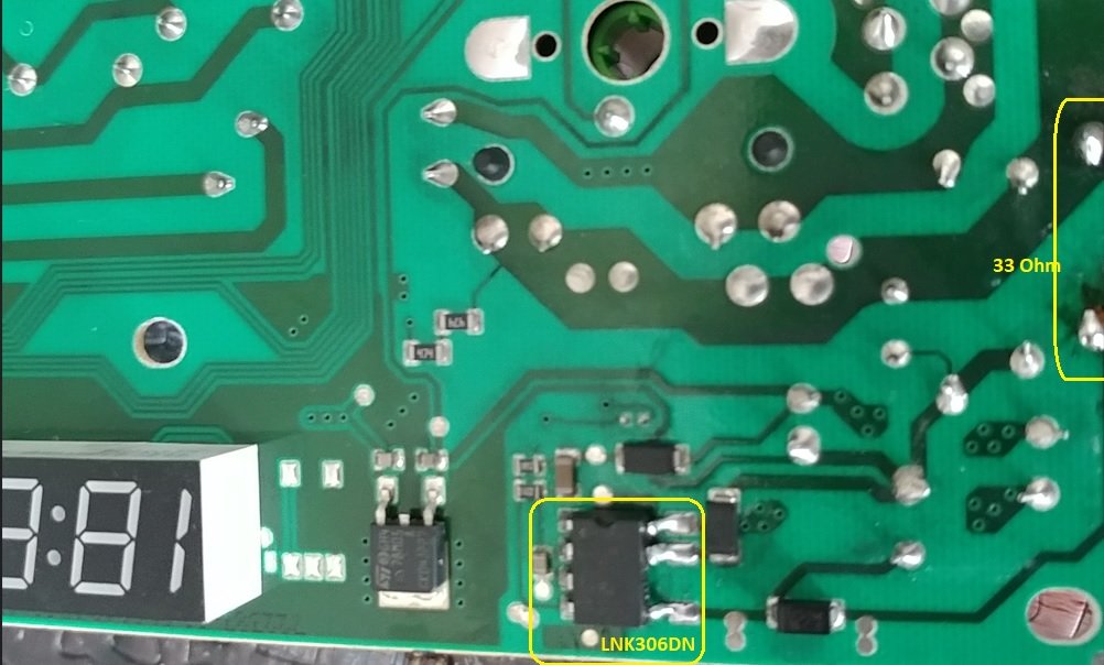 Jutros je stigla zamjenska elektronika, detaljno sam sve pregledao i vidio gdje je popravljana. Zamijenjen je otpornik 33 oma i IC LNK304 (postavljen LNK306DN).