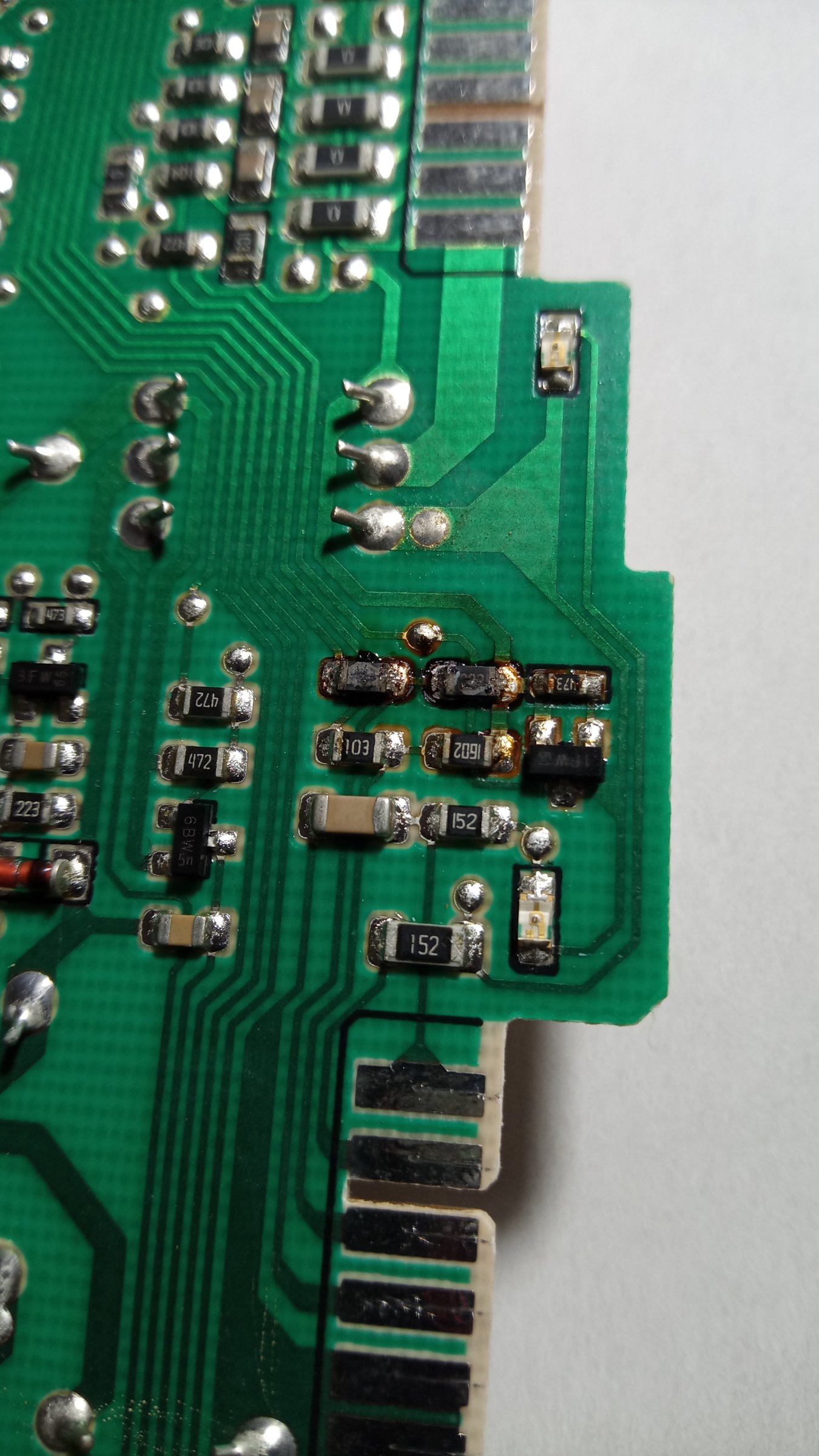 Idu na 4 izvod konektora, e sad šta je to, ne znam, nije mašina kod mene. Od taj izvod desni otpornik ide na masu, a levi na procesoru. Može da bude i oštečen taj izvod na procesoru, na masu nije probijen. Trebam ispitati šta dolazi na taj 4 izvod konektora da ne bi opet pregoreli otpornici.