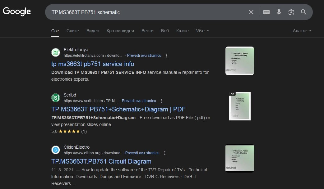 Covjek je tako donio,moguce da on to negdje pokupi,bio je jos jedan isti tv izgreban sav,al plati ,inace popravak,na ploci imam napone 3,3v i 5v stb,1.1V,1.5V.