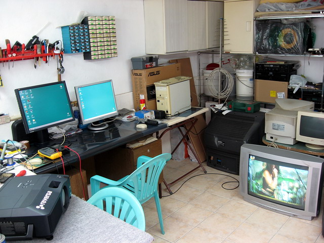 Evo kako izgleda moj brlog-bunjak gde provodim svoje najlepse dane. zanimljiva je slika jer samo sto je explodirao FBT na Prosonicu (PS.nemojte nikom da kazete) ajos je zanimljivije sto sam osetio da se vazduh jonizuje-bilo mi nesto sumnjivo pa sam prineo njusku trafou da pomirisem a onda.....