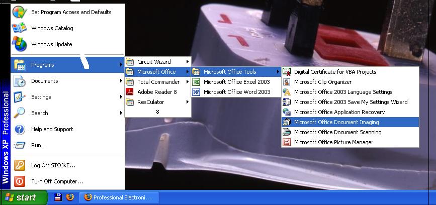 E ako imas office 2003 ides na START pa u listi programa nadjes OFFICE 2003 pa tu ides na OFFICE 2003 TOOLS i tu imas Microsoft Office Document Imaging File ikonica je siva i ima skener u sebi nacrtan.