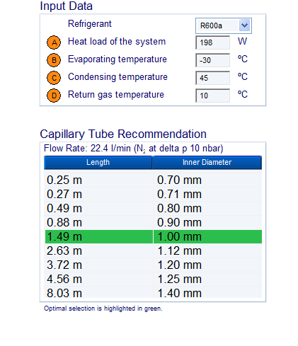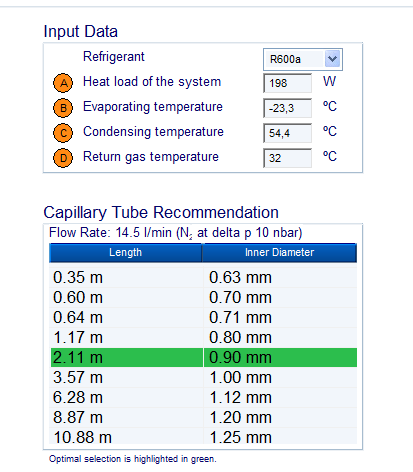 Pozdrav svim kolegama. Nov sam u ovom poslu. interesuje me kako se radi proračun kapilare za r600a. u pitanju je gorenje zamrzivač 400l. Kompresor je SECOP HMK 12 AA. Procureo je i hoću da stavim isparivač dužine 2000 x 430. I kapilaru 0,78. Molio bi za pomoć pri proračunu. Da li je ovo dobro?