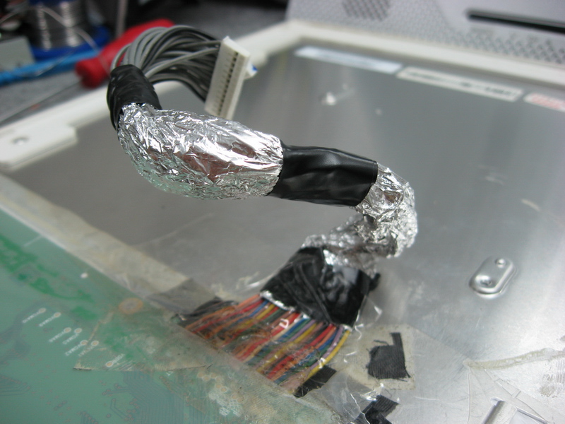Trafo jebio u odlicnom stanju....pustio sam monitor i proradilo je sve kada se javio i drugi problem...Slika se pojavljivala i gubila...utvrdio sam neispravnost konekcije izmedju ploce i ploce na panelu...preletovao sve, i dzabe...opet ista pesma...bio je ostecen konektor....izbacio konektor i lepo prespojio sa zicama...ali opet problem...smetnje zbog toga sto nisam stavio sirmovan kabl...jbga nisam imao...ubacio obicne zice, pa sam ih obmotao alu folijom za sendvice