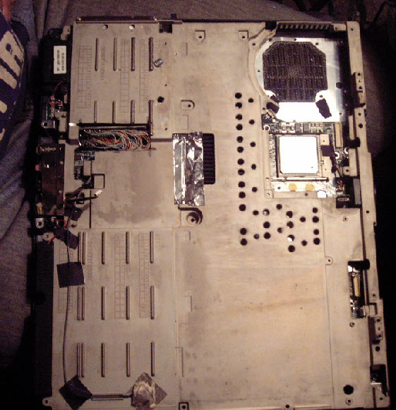 Posle mnogo razmišljanja šta i kako pribigli smo budženju(u pitanju je komšijin laptop),prvo je trebalo brusilicom iseći sa donje strane da bi se moglo prići kontaktima